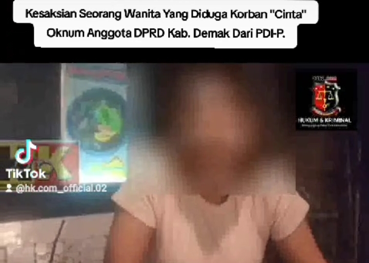 Demak, Hukum-Kriminal.com –Beredar Vidio di Tik Tok, Seorang wanita berinisial NN mengungkapkan dugaan perselingkuhan dengan salah satu anggota DPRD Kabupaten Demak, Ahmad Ryanto, yang berasal dari Partai Demokrasi Indonesia Perjuangan (PDIP). Kesaksian ini disampaikan langsung kepada media, mengungkap hubungan yang diwarnai janji pernikahan sirih hingga insiden kekerasan fisik.