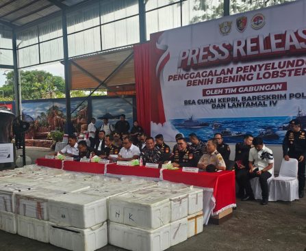 Batam, Hukum-Kriminal.com – Tim Gabungan Bareskrim Polri bersama Kanwilsus DJBC Kepri, dan Lantamal IV Batam berhasil menggagalkan upaya penyelundupan benih bening lobster yang yang terjadi di Perairan Berakit, Kabupaten Bintan, Kepulauan Riau. Hal ini disampaikan oleh Dirtipidter Bareskrim Polri Brigjen Pol Nunung Syaifuddin, S.I.K., M.M., didampingi Kakanwil DJBC khusus Kepri Adhang Noegroho Adhi, pada […]
