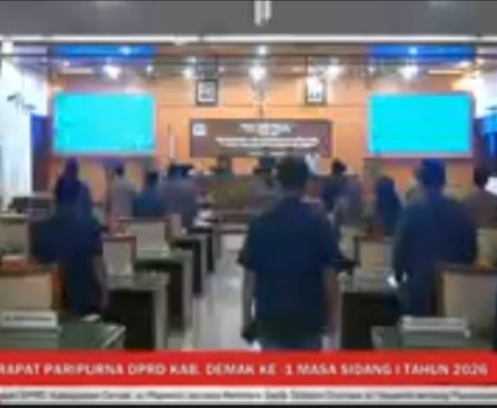 Demak, Hukum-Kriminal.com – DPRD Kabupaten Demak menggelar Rapat Paripurna Masa Sidang I (Kesatu) Tahun 2026 dengan agenda strategis pembahasan dan jawaban atas empat Rancangan Peraturan Daerah (Raperda), Rabu (18/2/2026), di Ruang Rapat Paripurna DPRD Kabupaten Demak. Rapat dipimpin oleh Pimpinan DPRD dan dihadiri Bupati dan Wakil Bupati Demak, unsur Forkopimda, Ketua Pengadilan Negeri Demak atau […]